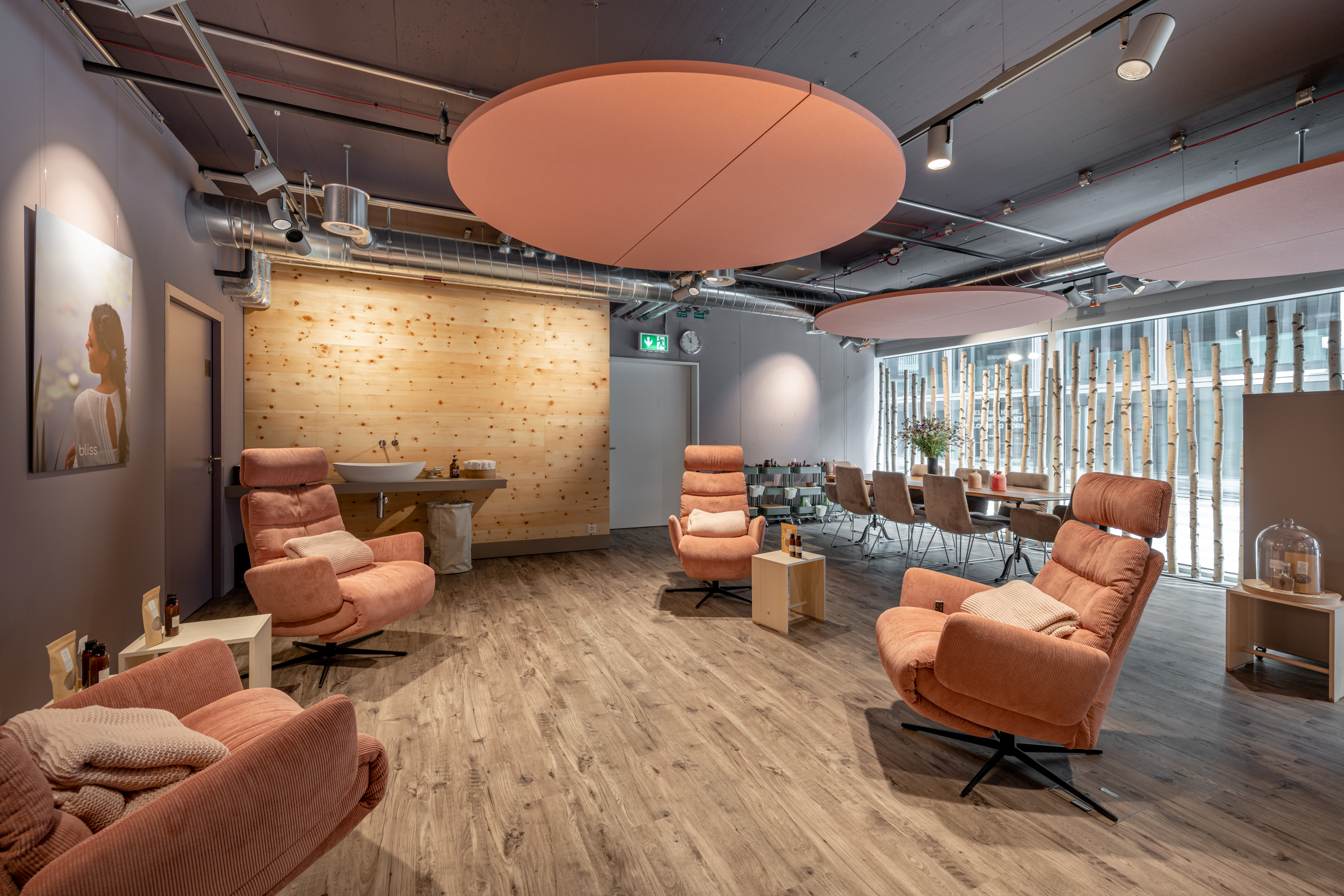Whether with a soothing massage, manicure or pedicure, a facial, Kneipp wraps or hair removal by means of sugaring, our hands touch you soothingly - physically and mentally. Recharge your batteries and enjoy the wonderful atmosphere of the cermony Bliss Centre, which is characterised by Swiss stone pine, birch and soothing, high-quality colours and materials.